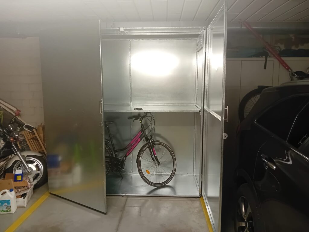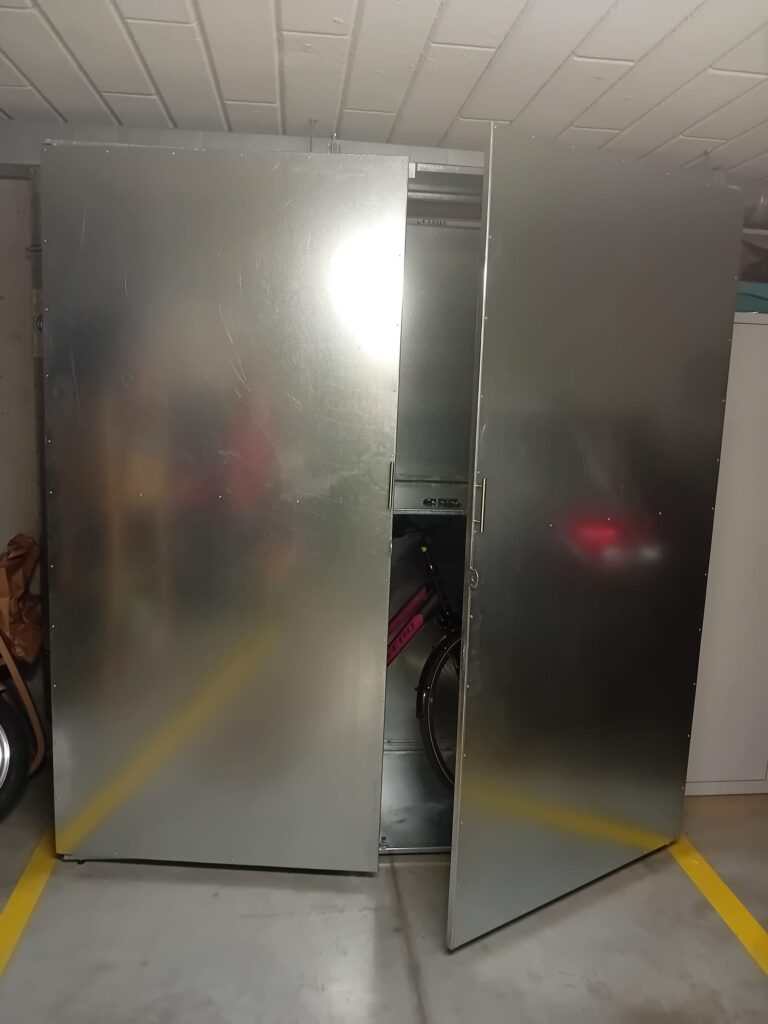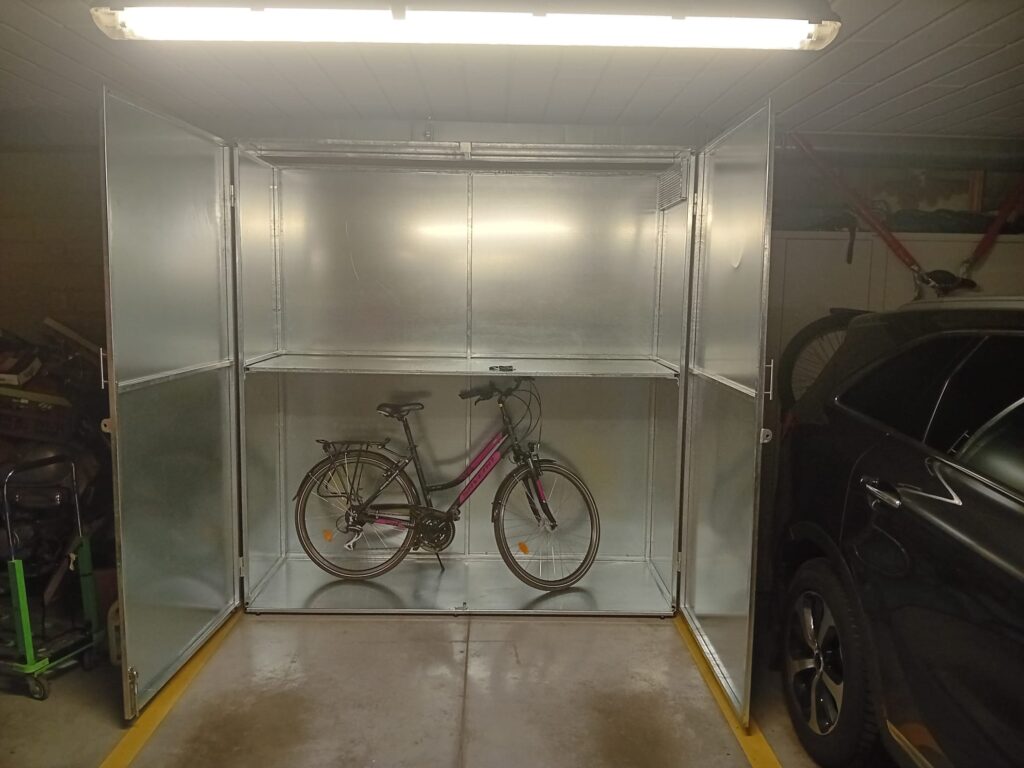 Przedstawiamy jedną z naszych ostatnich realizacji – szafa rowerowa wykonana na zamówienie, idealna do garażu podziemnego. Konstrukcja została zamontowana na końcu miejsca parkingowego, maksymalnie wykorzystując dostępną przestrzeń. Wymiary zabudowy to: